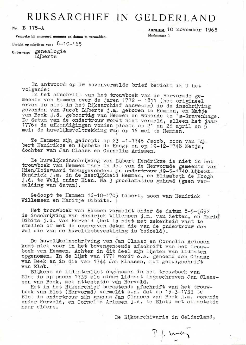 In deze brief zien we de namen van Lijbert Hendrikze en Hendrick Willemsen terugkomen, de tot nu toe oudst bekende voorouders. Zie Generatie 5 en 6 op de vorige pagina.
